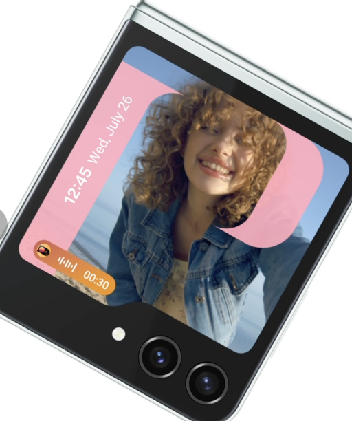 기존 2분의 1 정도의 디스플레이에서 플립 커버 스크린을 전체로 채워진 플렉스 윈도우를 통해 전보다 더욱 활용도가 높아진 것으로 보입니다. 86.1mm로 갤럭시 z플립 사상 최대 크기의 커버 스크린으로 커버를 닫고도 셀카를 자유자재로 찍을 수 있습니다.