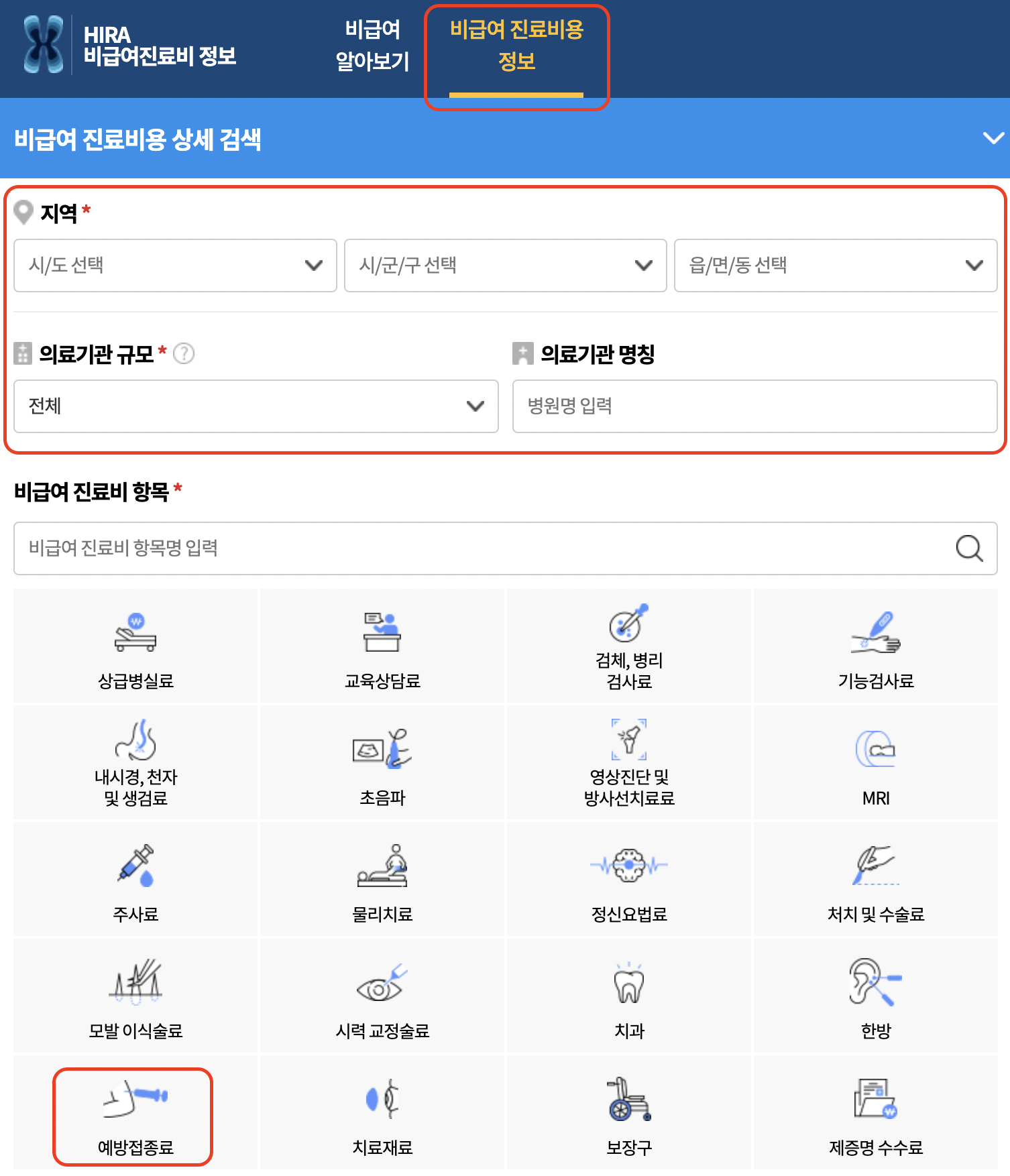 - 비급여 진료비 항목 중 [예방접종료] 선택