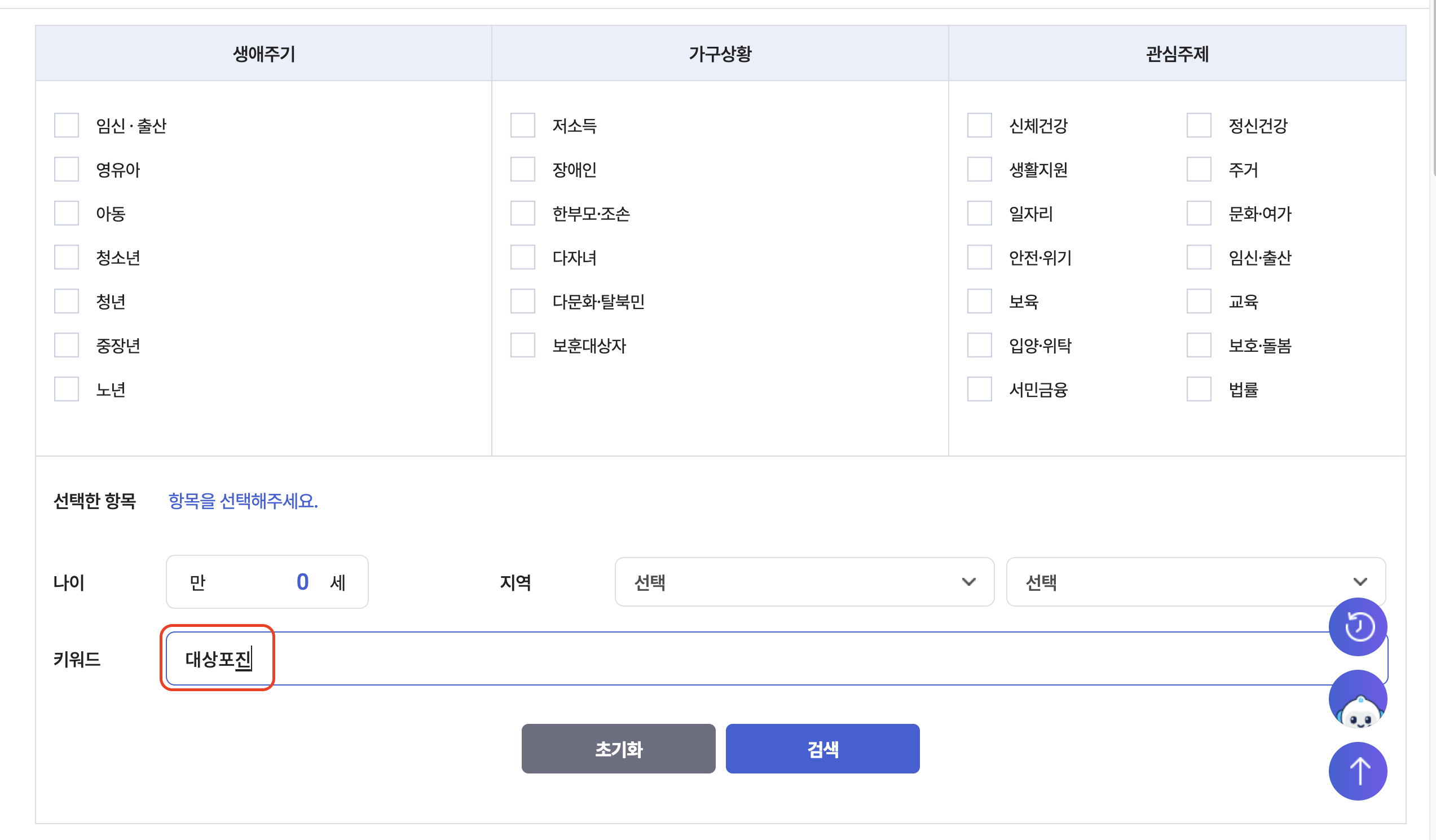 - 상단의 메뉴바에서 [복지서비스 > 서비스 목록] 클릭