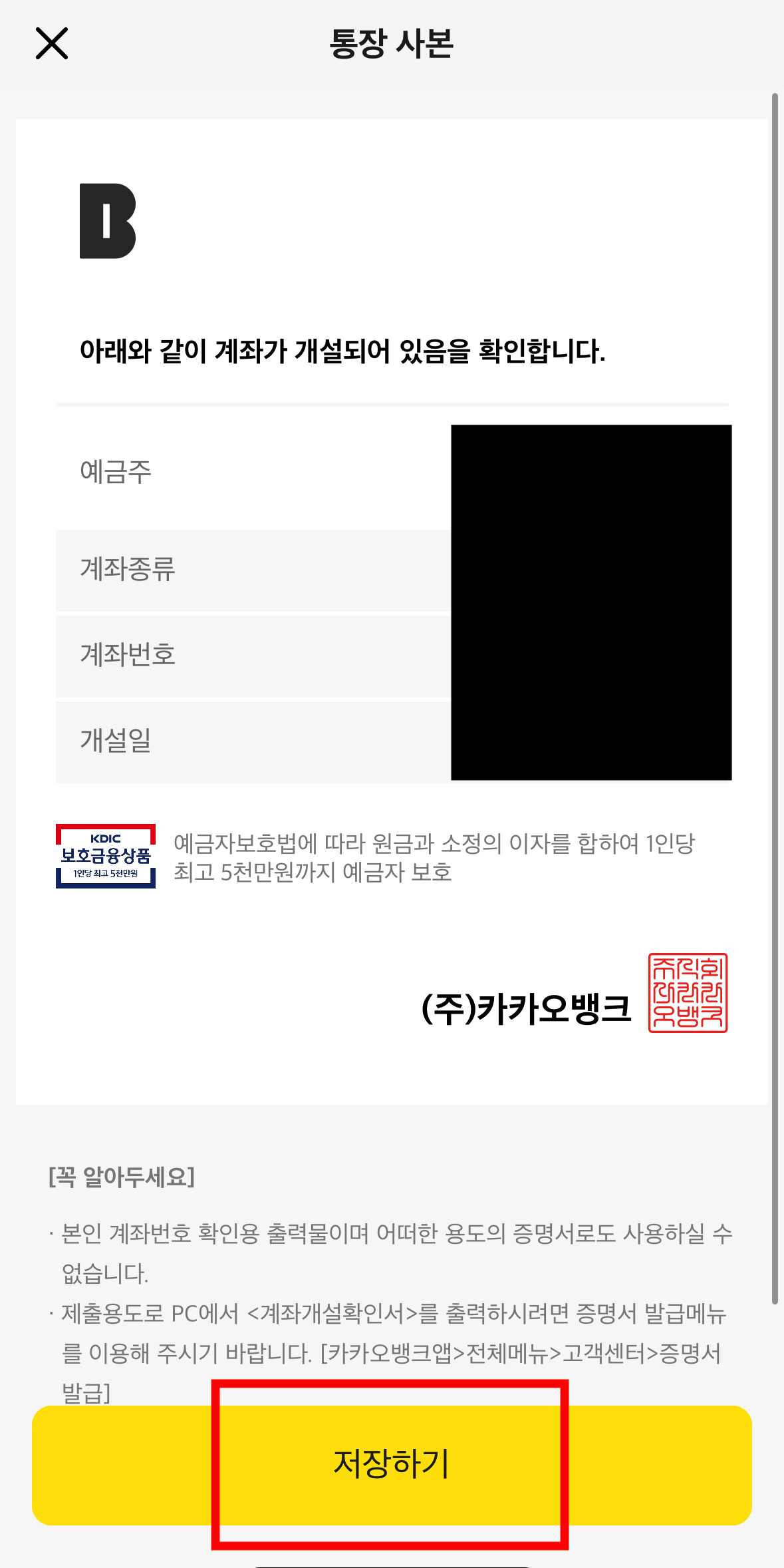 카카오뱅크 통장사본 출력하는 방법(+계좌개설확인서) - 소중해